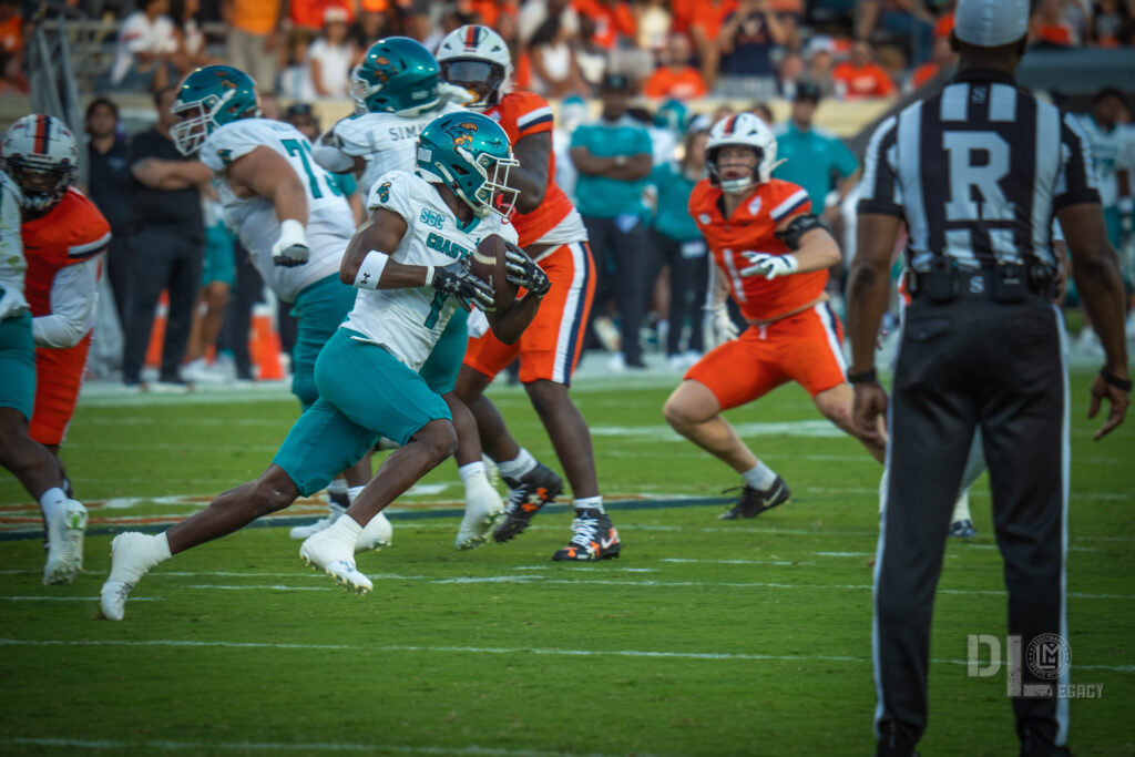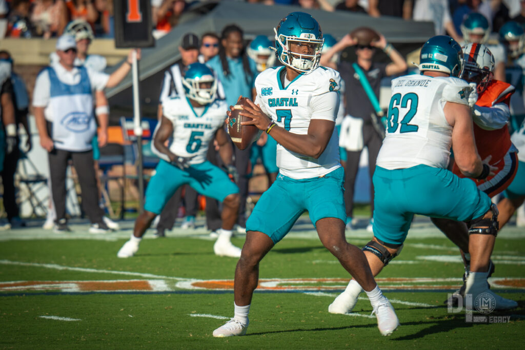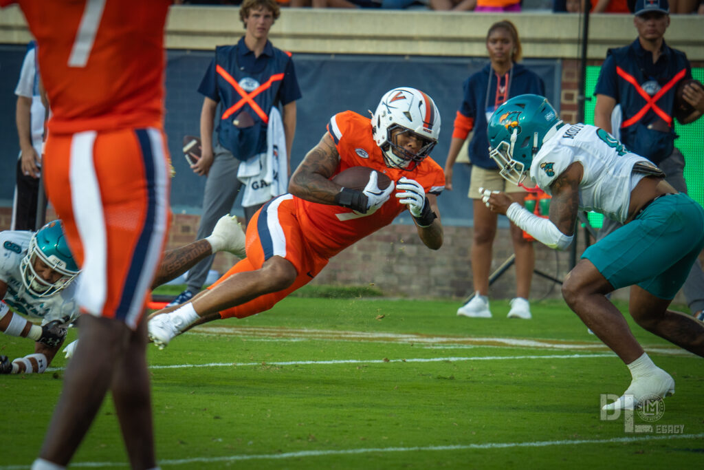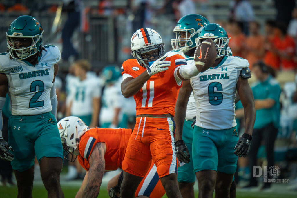 Virginia exploded for 21 points in the second quarter, turning a close game into a rout. After a Coastal Carolina three-and-out, the Cavs took over at the Chanticleers’ 36-yard line following a blocked punt by Caleb Hardy. Seven plays later, Waylee punched it in from 1 yard out, making it 14-0. Morris then orchestrated a 90-yard drive, hitting Ross for a 29-yard touchdown pass to extend the lead to 21-0. With just 1:34 left before halftime, Virginia struck again. Starting from their own 20, Morris connected on key cases, including a 48-yard one-handed grab by Trell Harris, setting up a 2-yard touchdown toss to Jahmal Edrine with 18 seconds remaining. The Cavaliers entered the locker room up 28-0, with Morris already at 239 passing yards for the half. Coastal Carolina struggled offensively, gaining just 93 yards in the first half and failing to convert on third downs (0-for-7).