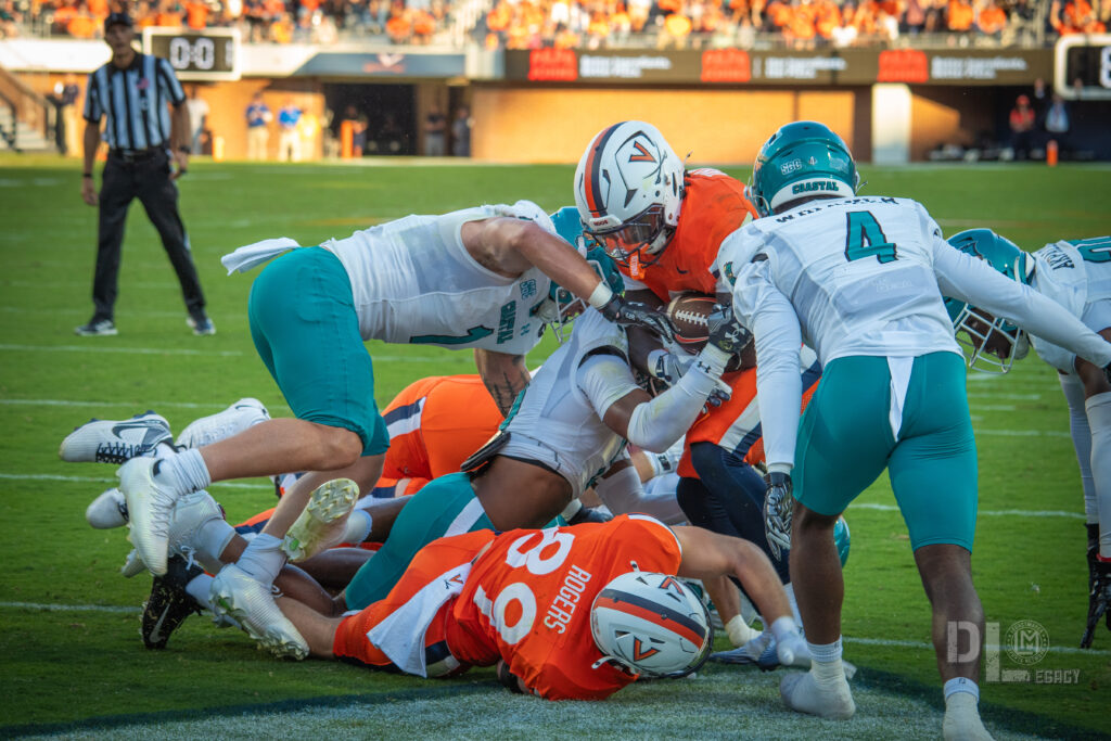 With the game well in hand, Virginia added two field goals from Bettridge—a 32-yarder after a 53-yard drive and a 41-yarder following a short possession—to finalize the score at 48-7. The Chanticleers outgunned Virginia 168-122 in the second half but couldn’t capitalize, turning the ball over twice via fumbles recovered by James Jackson and Kevon Gray, plus an interception by Ethan Minter.